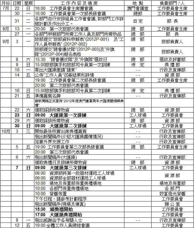 2012年度大匯操工作進度日程